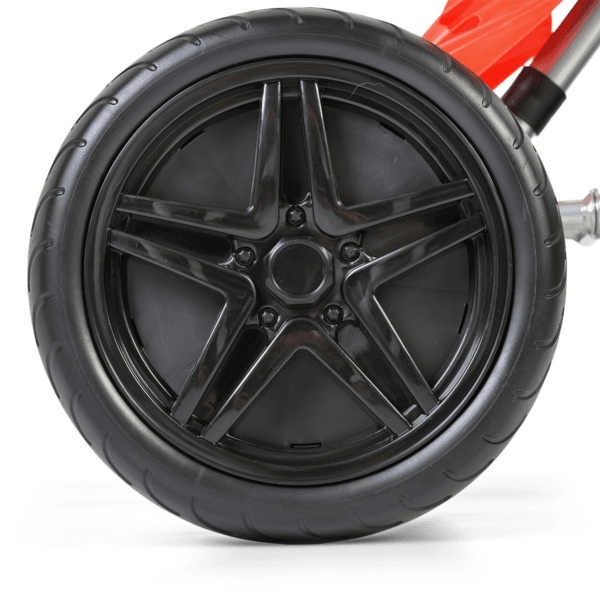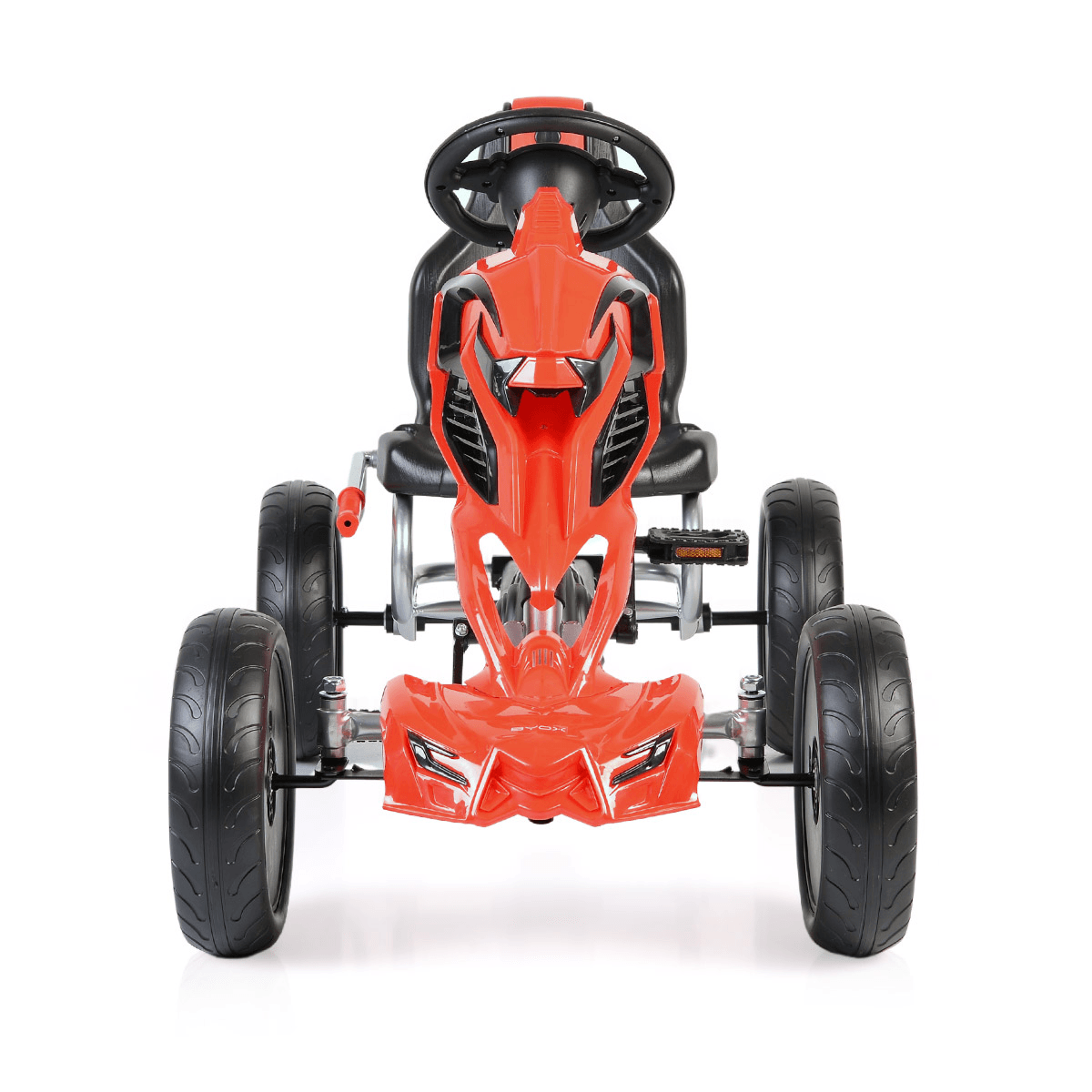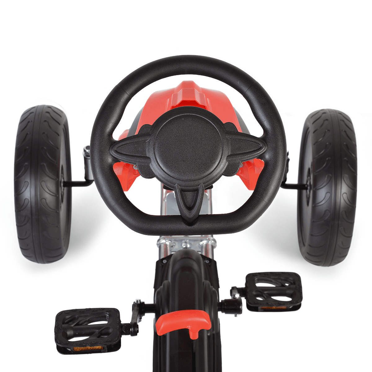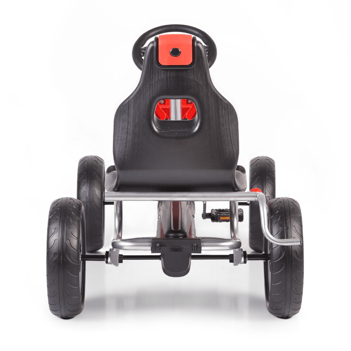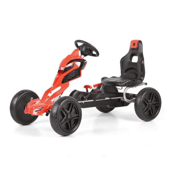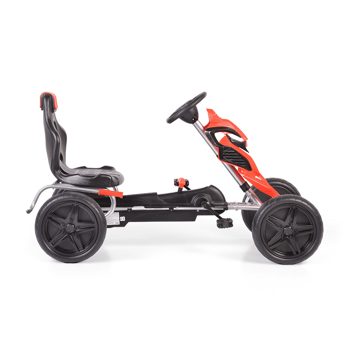 Картингът е с големи PVC гуми за по – меко возене, лост за свободно движение, масивна рамка и удобна ергономична седалка.