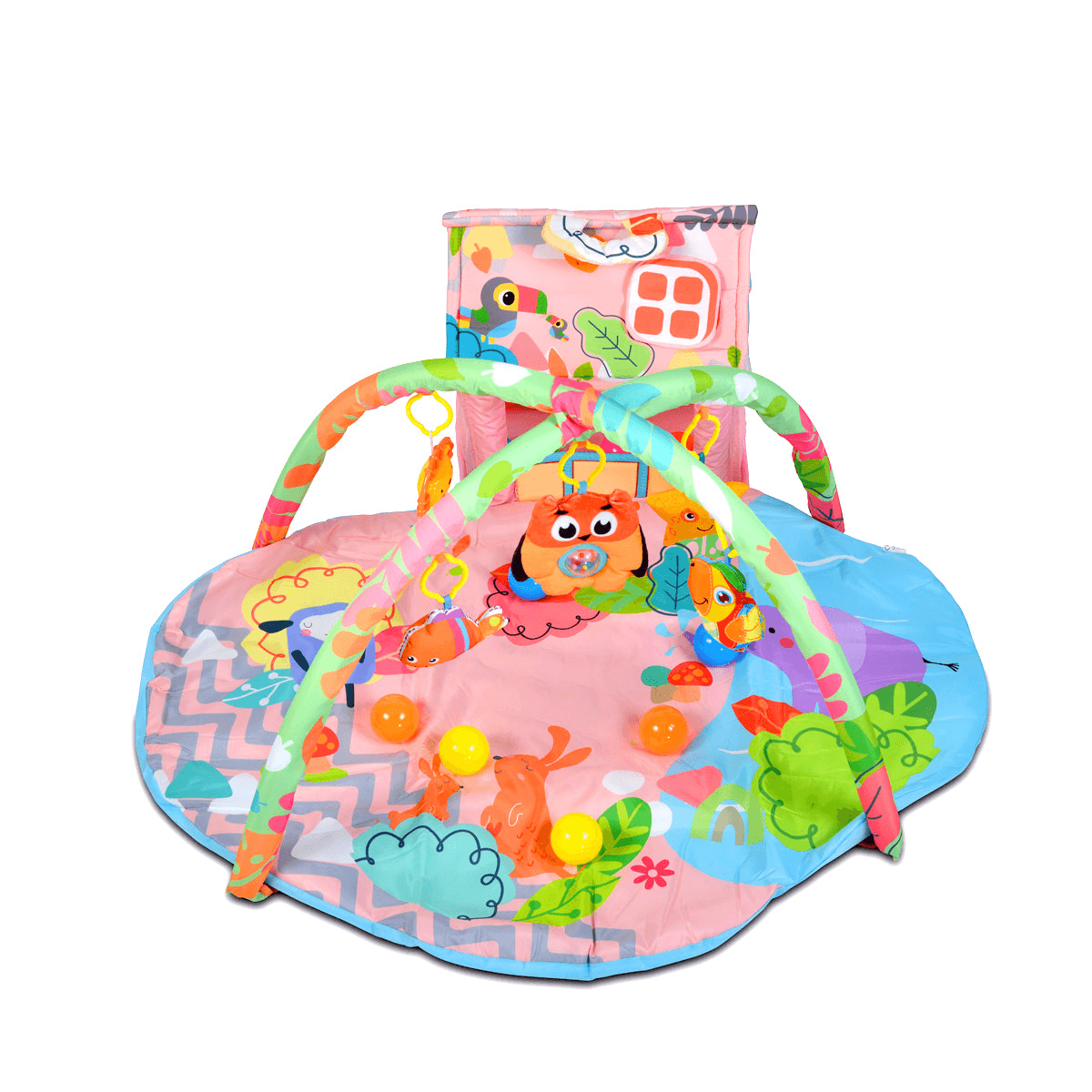 Активната гимнастика е с отделение за съхранение на топките и функция за преобразуване на част от продукта в къщичка. Тя е изработена от 100% безопасен материал: 100% Полиестер, PP.
