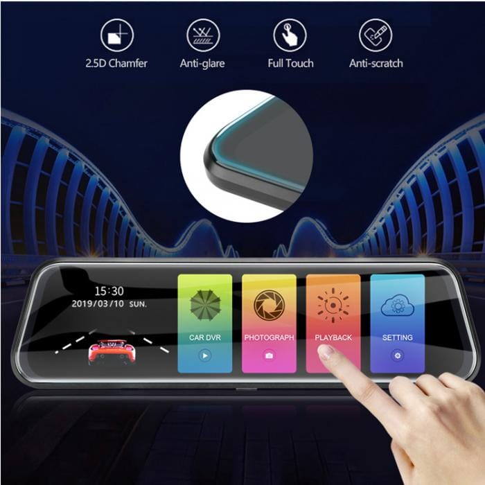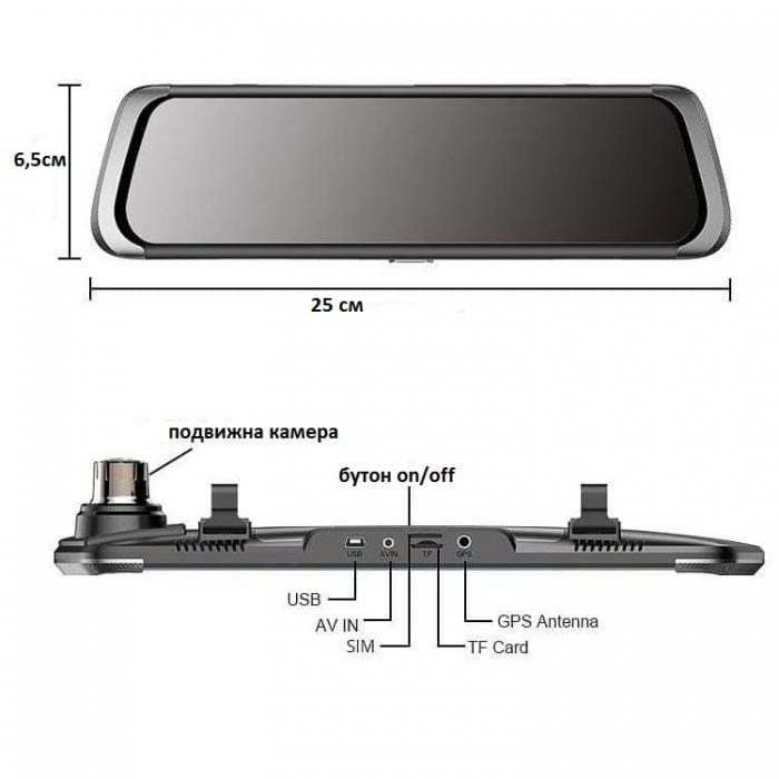 - Функционалното огледало за автомобил е с две камери – едната е на самото огледало, а другата – подвижна, подходяща за задно виждане, което ви дава възможност едновременно да виждате какво се случва пред и зад колата.