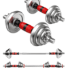 Дъмбелите може да се свържат чрез лостове, за да станат щанги, които са твърди и здрави. Този комплект домашен фитнес уред има много възможности за тренировка може да отговори напълно на нуждите от упражнения за горни и долни крайници. Този комплект Ви позволява да тренирате по всяко време и навсякъде!