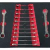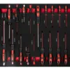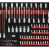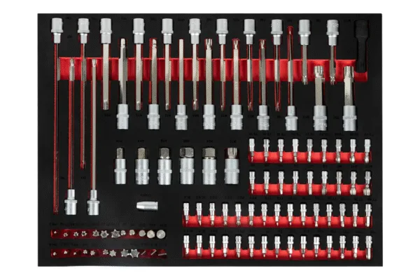 •Чекмеджета 1-2: Вложки (допени) ¼″, 3/8″, ½″, ратлетни тресчотки, карданни съединения и удължители.