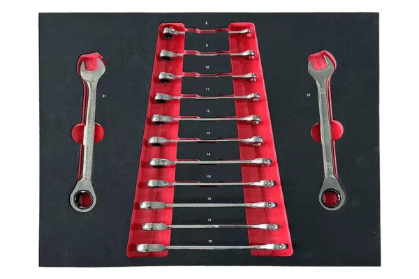 •Чекмедже 3: Комплект ратлетни ключове (8–22 mm).