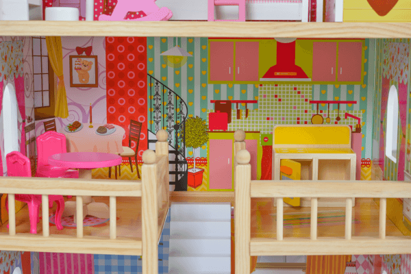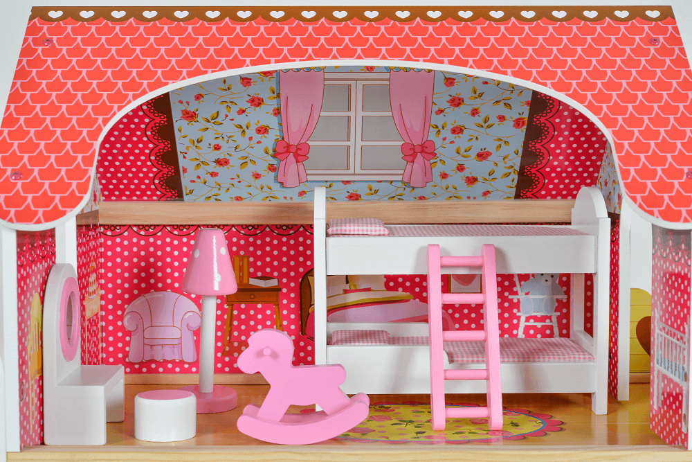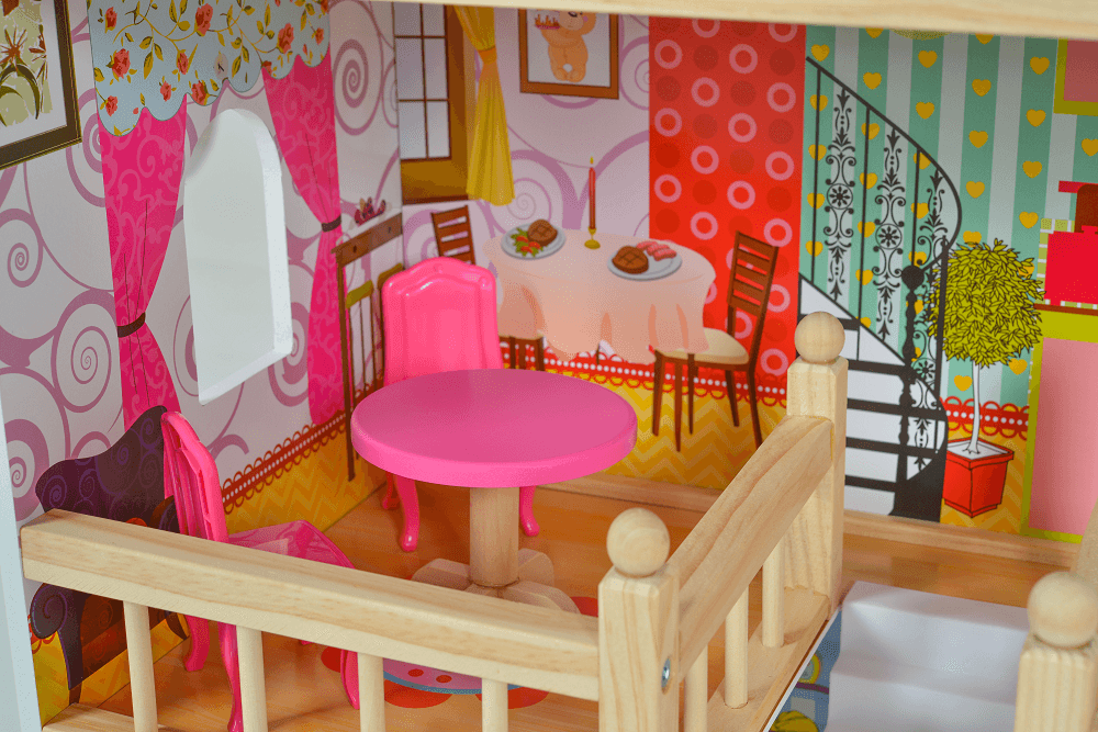 Размер на сглобената къща е височина 90,00см, ширина 59,00см и дълбочина 33см.